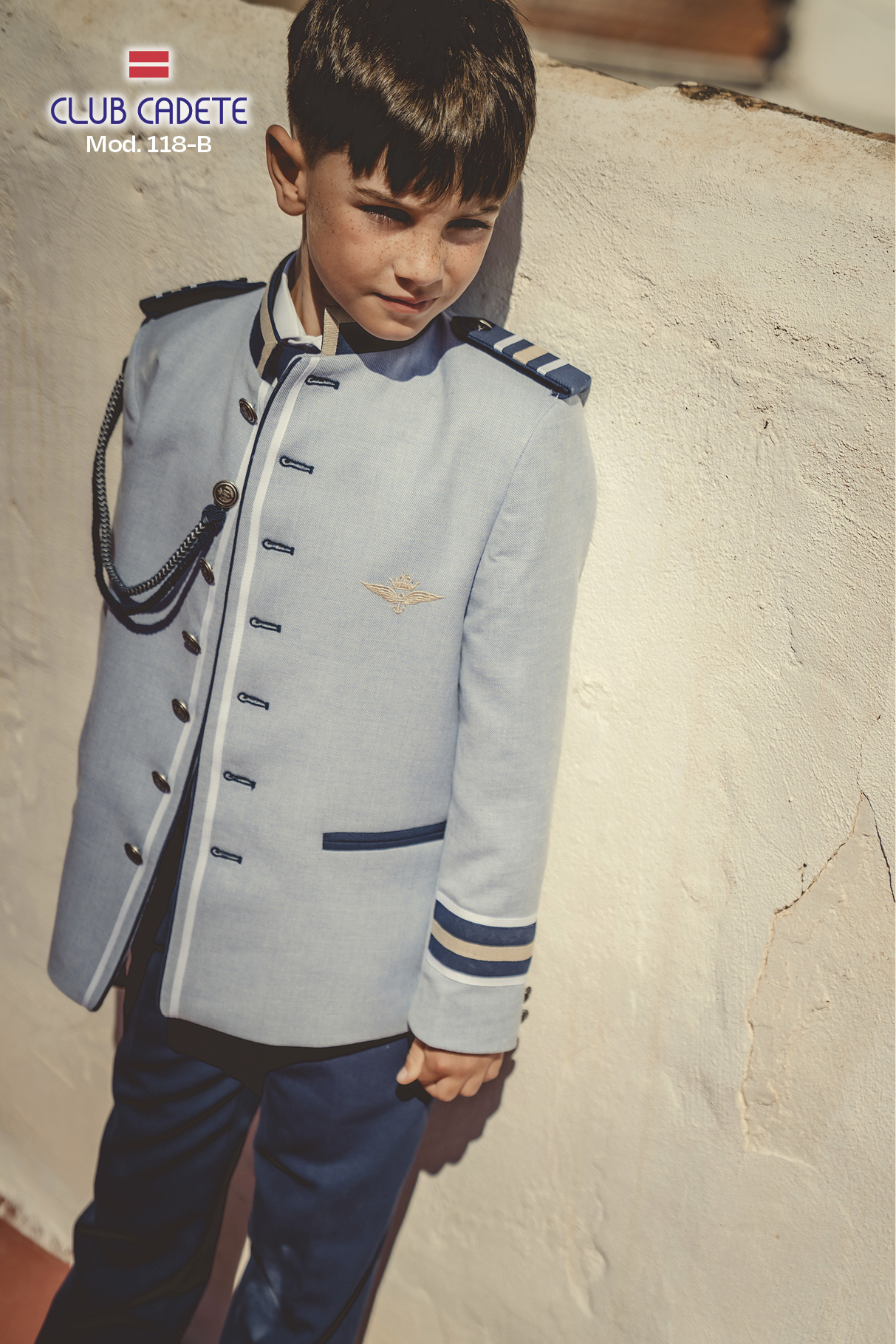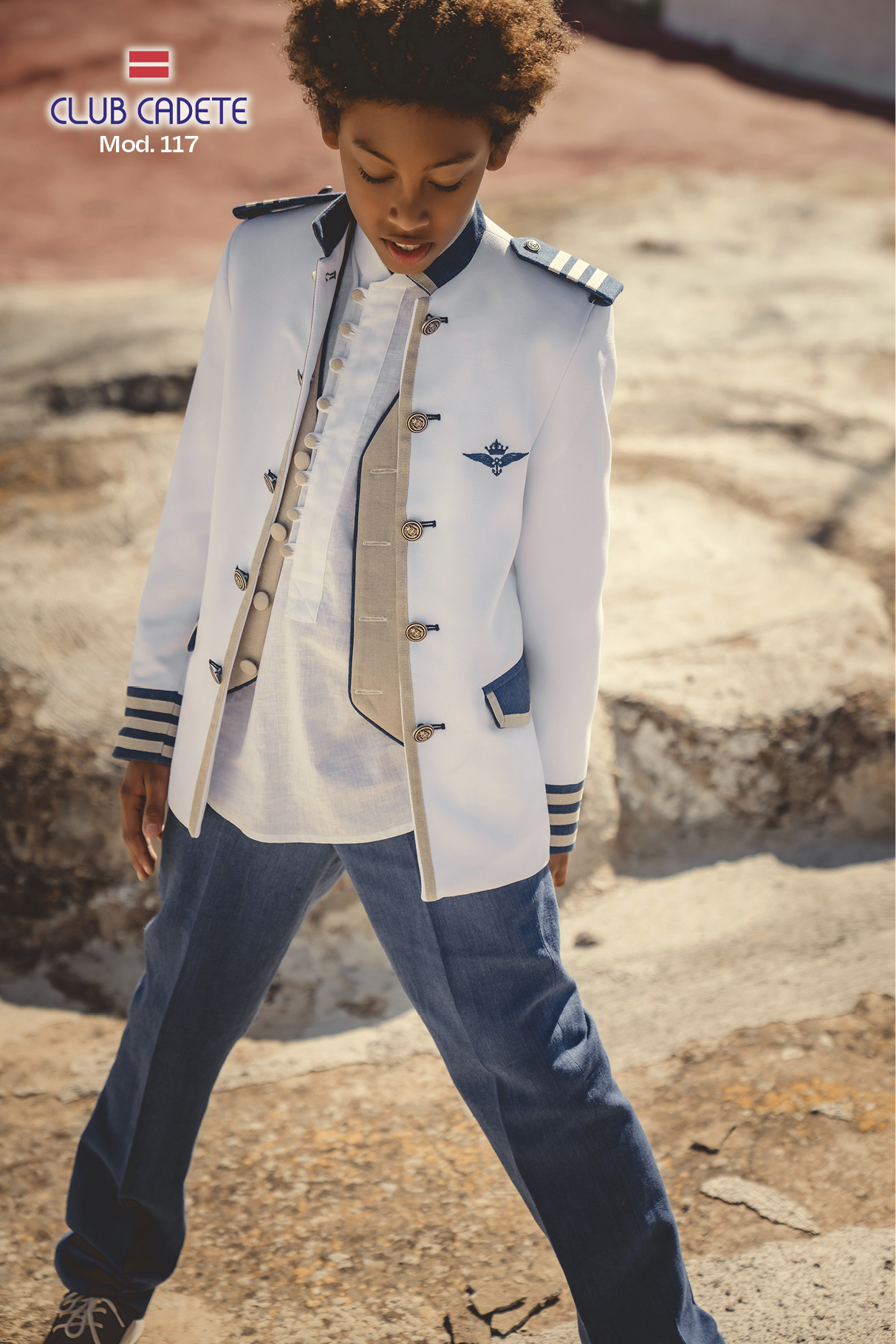 Pero si hay un modelo que a los niños les apasiona es el de almirante. Vestirse de “mayor”, con su chaqueta, pantalón, camisa, chaleco y corbata, y, además, de “gala”, con sus forrajeras y galones, los enloquece. Patrones y tallajes adaptados a todos los cuerpos y colores y texturas de lo más variado les hacen sentirse únicos.
